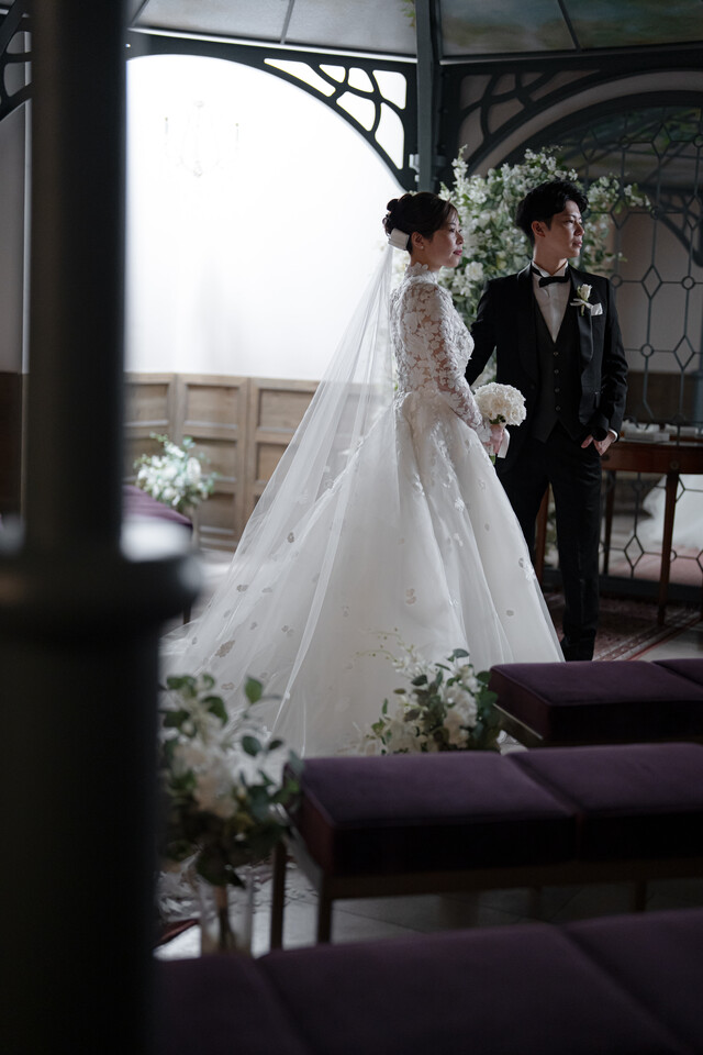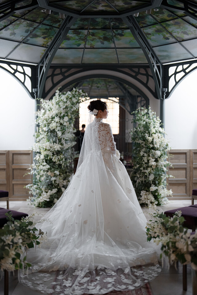 セレニティーに惹かれ試着してみました。ロングスリーブで露出がなく上品でありながら、可愛らしさと華やかさもあるドレスで、他ではなかなかないデザインだなと思いました。一緒に来ていた母もすごく気に入っていて即決でした。式場提携ショップでも色々なドレスを試着をしましたが、レースやロングスリーブのドレスで惹かれるものがなく価格も高いので悩んでいたところ、VERDEさんを見つけ素敵なドレスに出会うことができました。それから、和智さんがヘアメイクもされているということで一緒にお願いしました。式当日まで半年ほどありましたが、初回の試着以降にもフィッティングさせていただき、おかげで小物合わせできたり、ダイエットのモチベーションにもなりました。ヘアメイクリハーサルの際にも実際のドレスを着てしていただけるので、当日のイメージが湧きとても安心でした。ドレスのこと・ヘアメイクのこと、和智さんにはたくさん相談させていただき当日は大満足の仕上がりで幸せでした!素敵なドレスをレンタルできただけでなく、ヘアメイクも一貫してお願いして本当に良かったです。